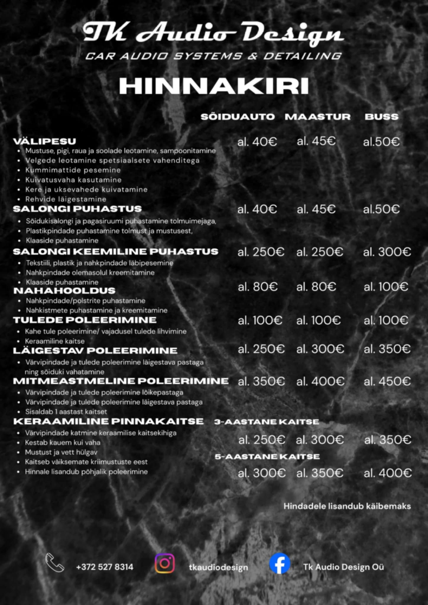 Professionaalne välipesu, salongi puhastus, poleerimine ja keraamiline pinnakaitse.